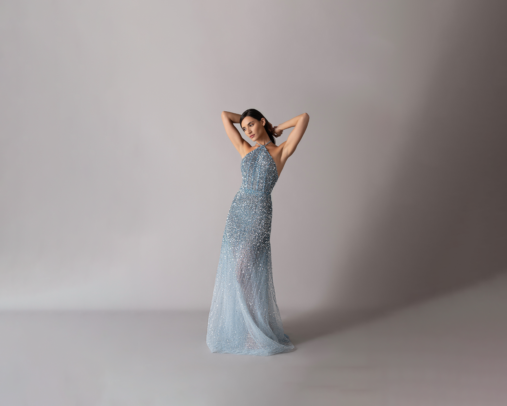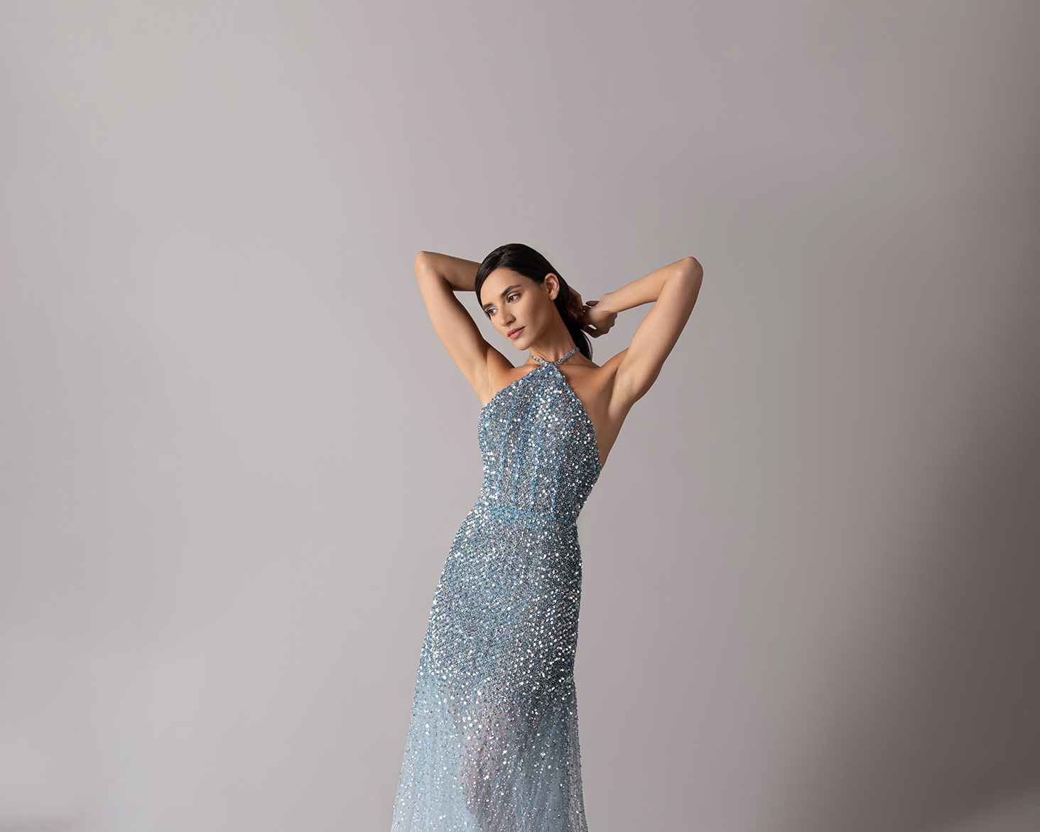 Shimmery triangle backless dress