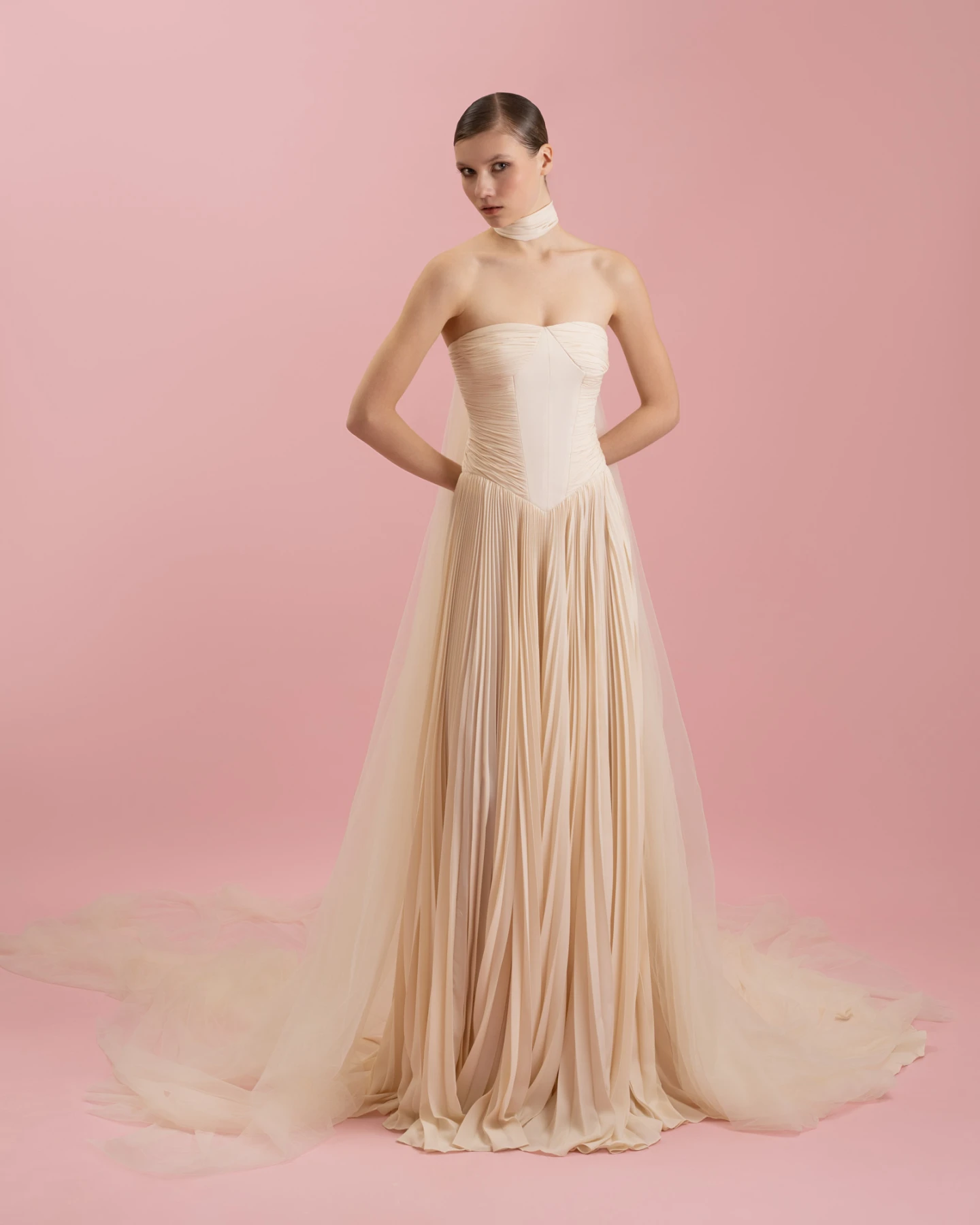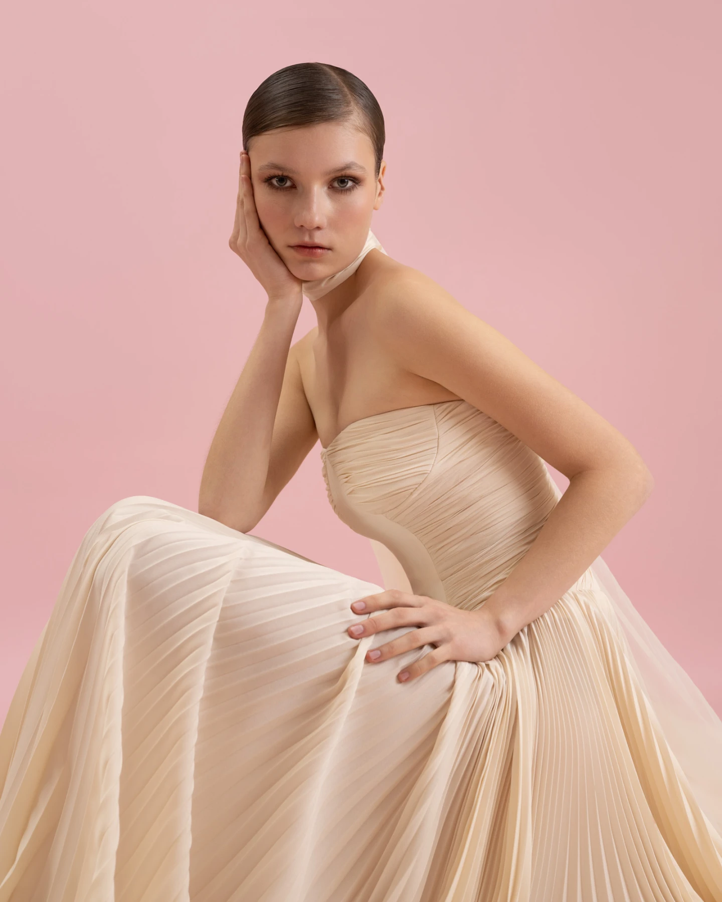 Step into the dreamy bridal room, where a curated collection of ready-to-wear gowns awaits, each a masterpiece of craftsmanship, every stitch and bead telling its own story. Soft light caresses the fabrics, revealing delicate textures, flowing silhouettes, and exquisite details that make each gown unforgettable. Alongside these, custom-made bridal dresses transform personal visions into one-of-a-kind creations, crafted with unparalleled devotion and artistry. From the first encounter with a gown to the final fitting, every moment is designed to leave a lasting impression and create memories to cherish forever.