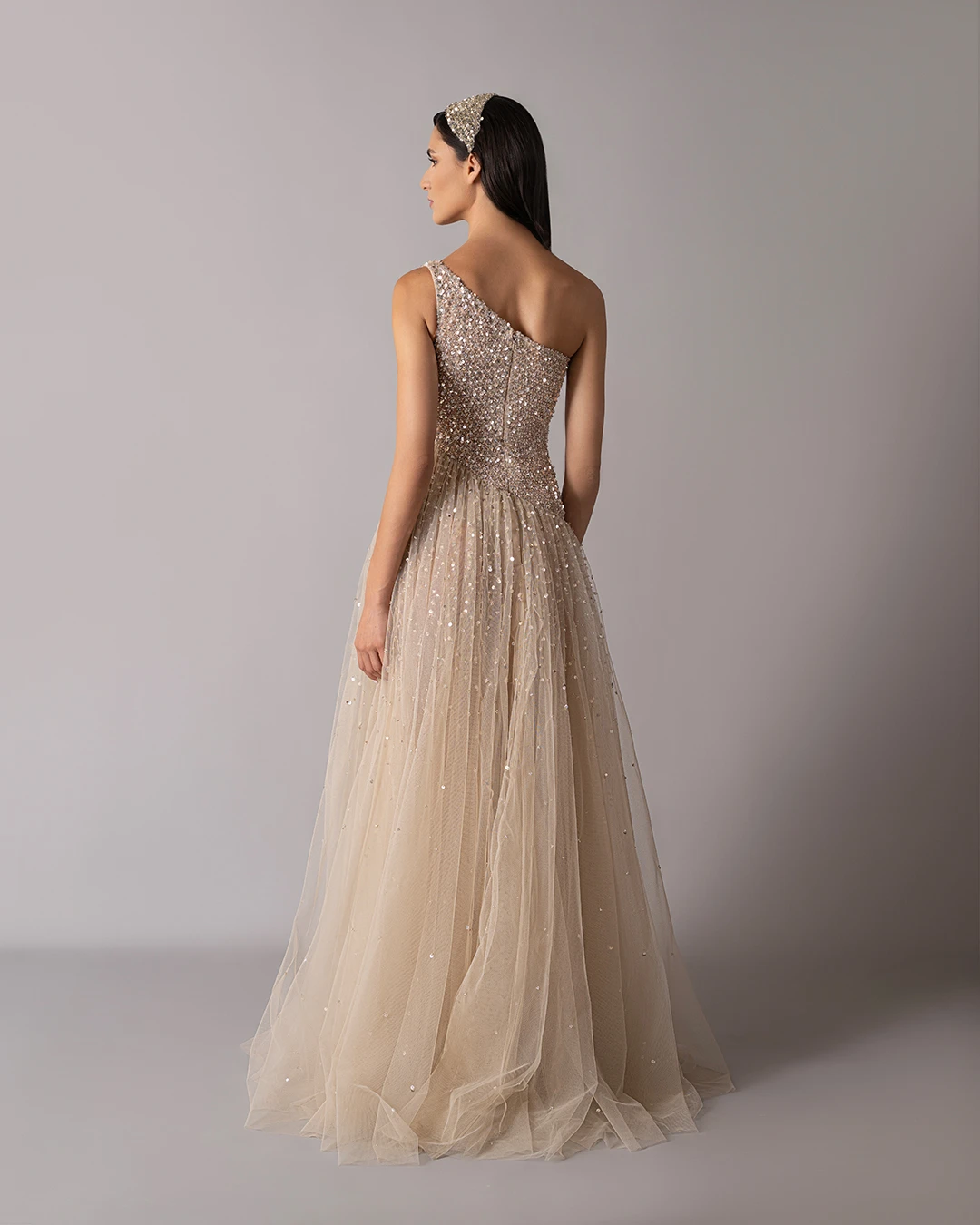 One-shoulder sequined dress