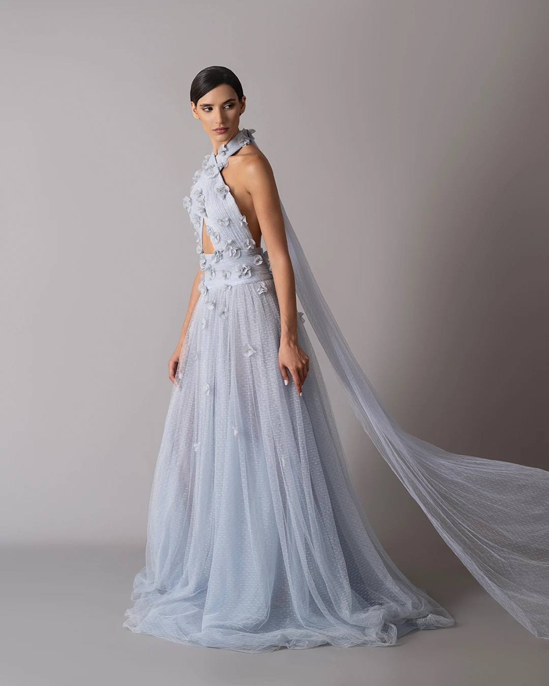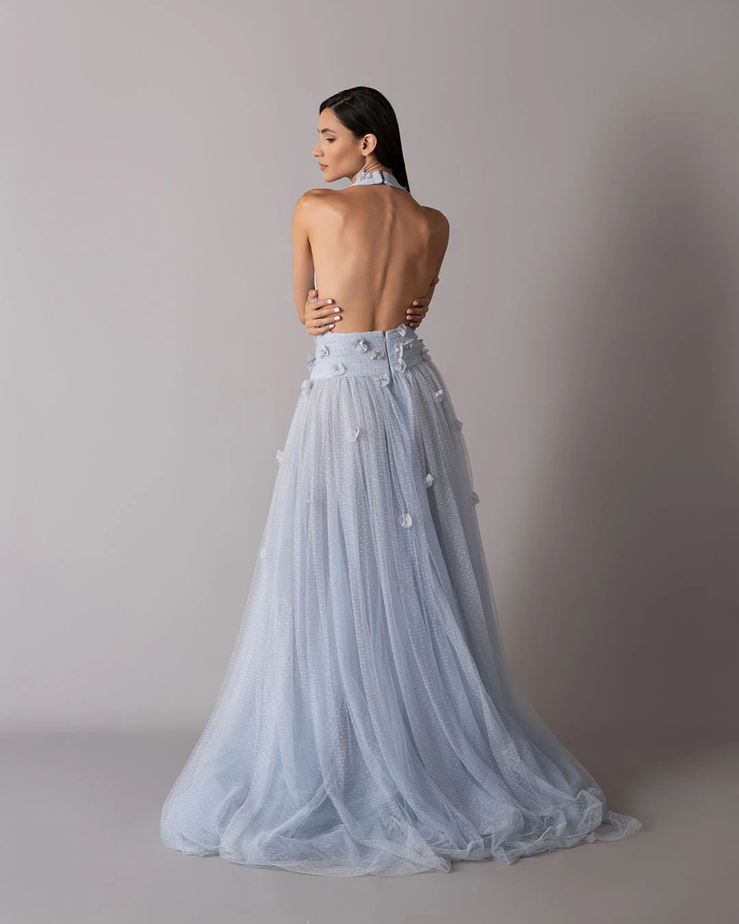 Criss-cross dotted tulle dress